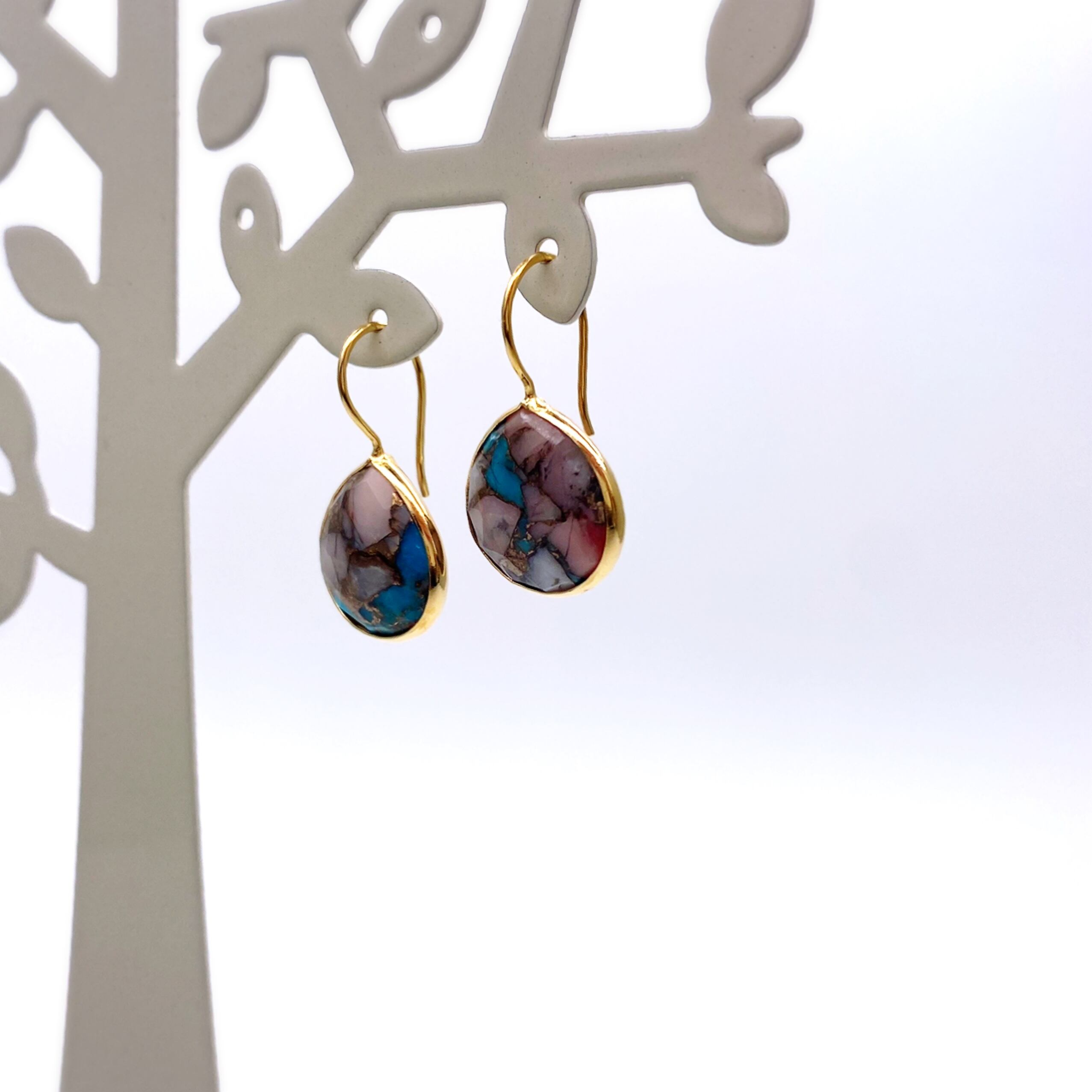 こちらのピアスは、ピンクオパールとターコイズをコッパー(銅)を使って